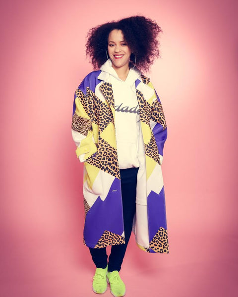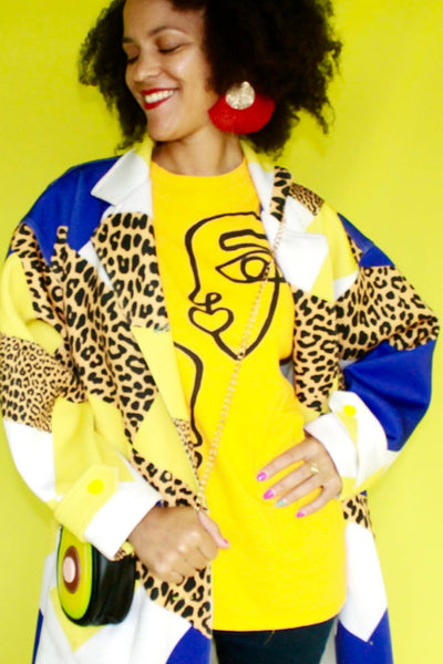 This statement coat features a bold, colorful animal print that will make heads turn. It's an oversized fit so it's perfect if you love layering and comfortable chic clothes.